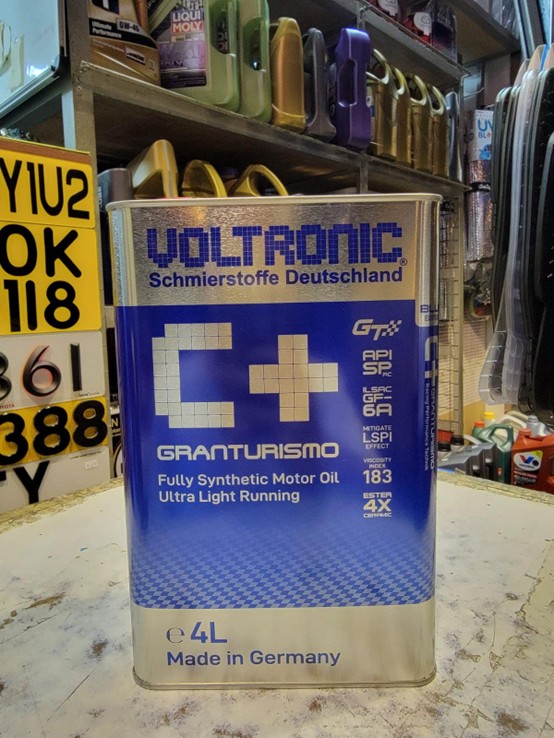 VOLTRONIC ® GranTurismo C+ BLUE 是擁有4倍酯類基的高性能全合成陶瓷氮化硼機油,對應 SAE 20 和 30 的黏度範圍,可適用於當前最新多汽缸、多汽門有或無增壓汽油及柴油引擎,極致抗剪力性能於極高溫及極嚴苛駕駛情況下仍保有優異潤滑油膜保護層,使引擎動力穩定輸出,傑出散熱性能可使引擎於高轉速高溫狀況下避免提前點火產生爆震、敲缸情形。